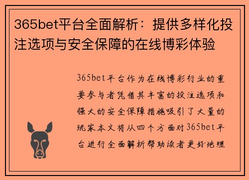 文章摘要:随着科技的不断发展,数字化技术已经在各行各业中展现出巨大的潜力,尤其在体育产业的应用上,催生了新的变革。678体育作为行业的先锋,致力于推动体育产业的全面升级,打造全新的数字化运动体验平台。这一平台不仅能够提高用户的参与感和体验感,还将推动体育赛事、健身产业等多个领域的数字化转型。本文将从四个方面详细探讨678体育如何通过技术创新助力体育产业的升级,包括数字化运动体验平台的构建、用户体验的提升、赛事直播和互动技术的应用、以及数据分析与智能化管理的结合。通过这些方面的深度剖析,可以更好地理解678体育在推动体育产业数字化转型中的关键角色和未来发展趋势。